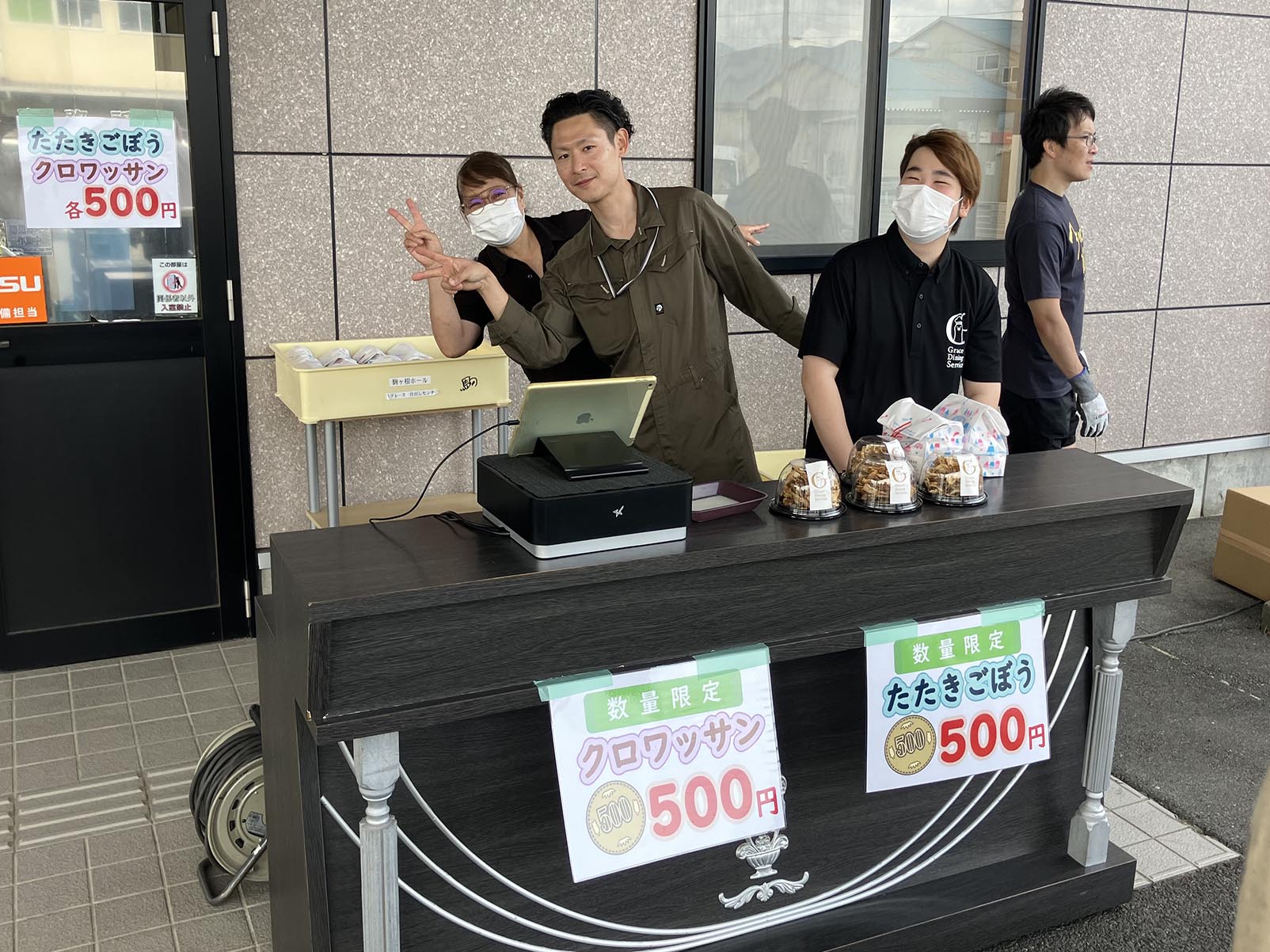 今年は会場でクロワッサン、たたきごぼうをワンコインで販売させていただきました。おかげさまで好評につき、ほぼ売り切れとなりました。