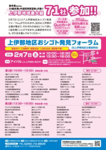 2/7(土)上伊那地区おシゴト発見フォーラムに参加いたします!